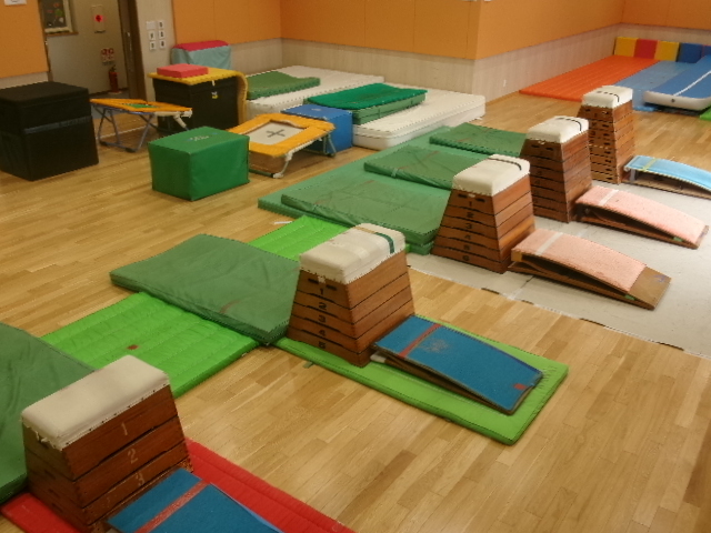 最初の10分間で準備運動と補強運動を行い、次の20分間でマット運動もしくは、とび箱を行います。